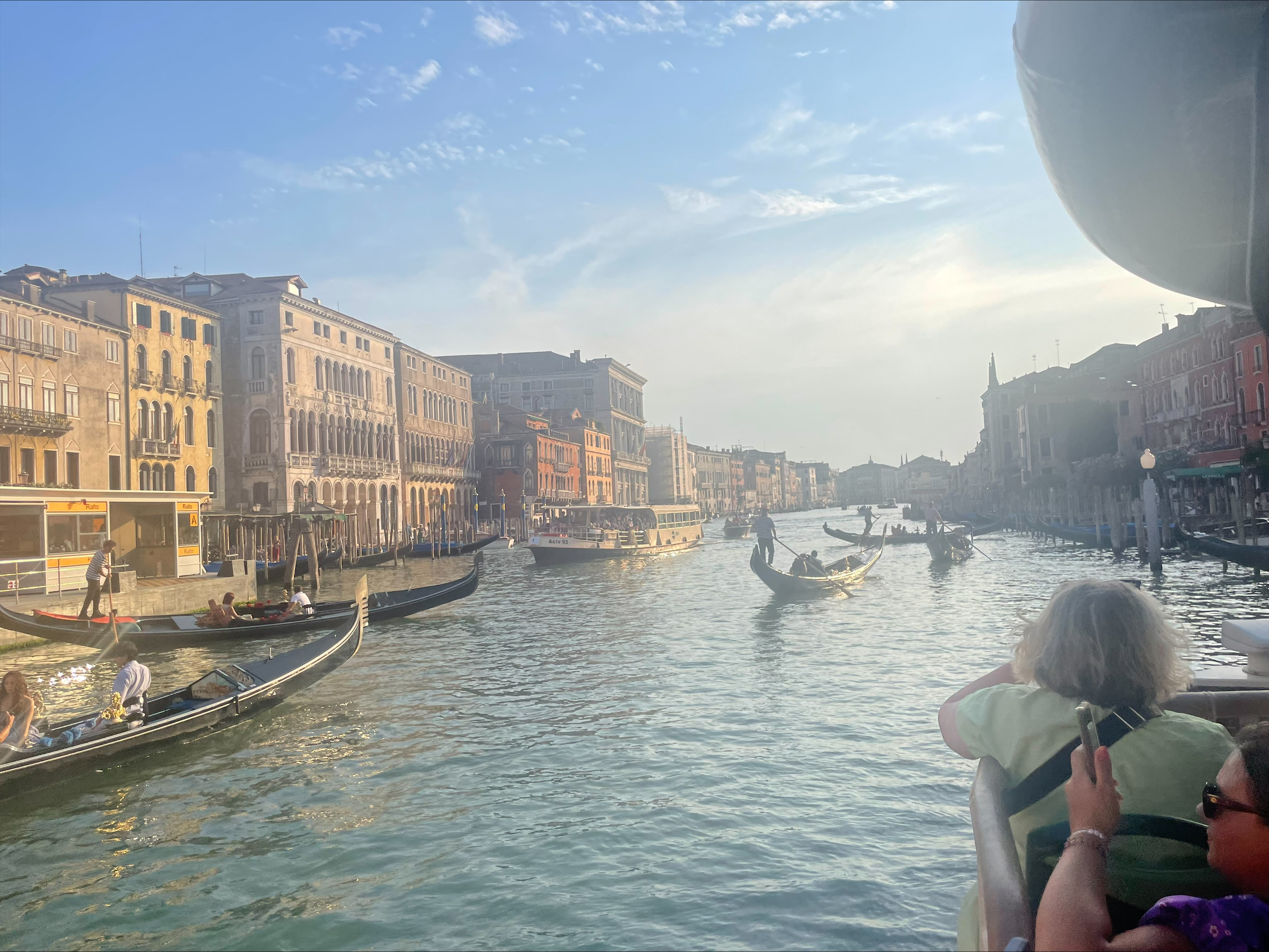 With unobstructed views, the vaporetto offers an authentic cross-section of Venice with residents carrying shopping bags shoulder-to-shoulder with tourists taking in the city in a way that walking alone cannot match.