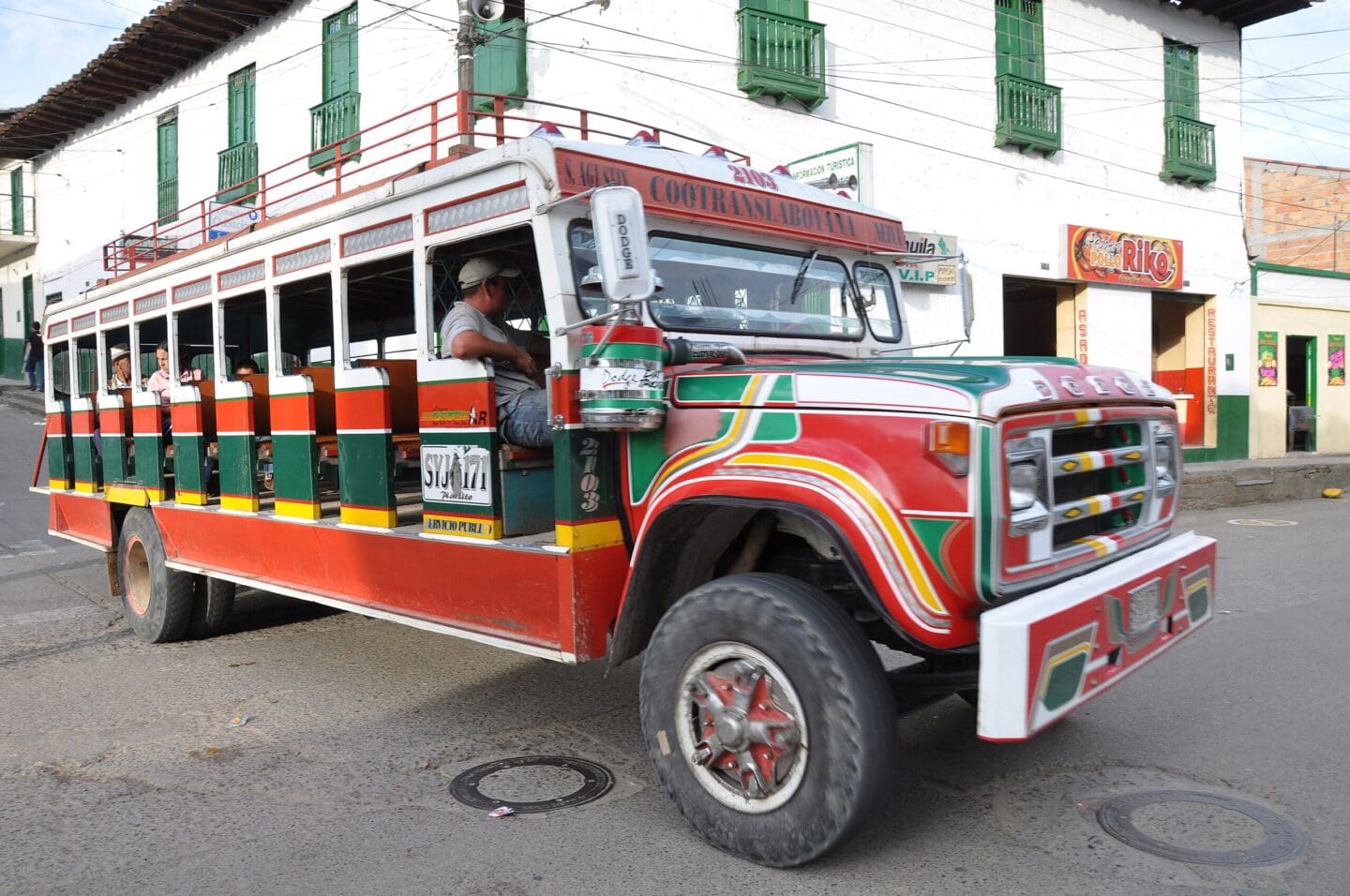 A colorful, open-sided bus known as a chiva in Ecuador. Photo by Jorge Láscar on Flickr, CC BY 2.0.