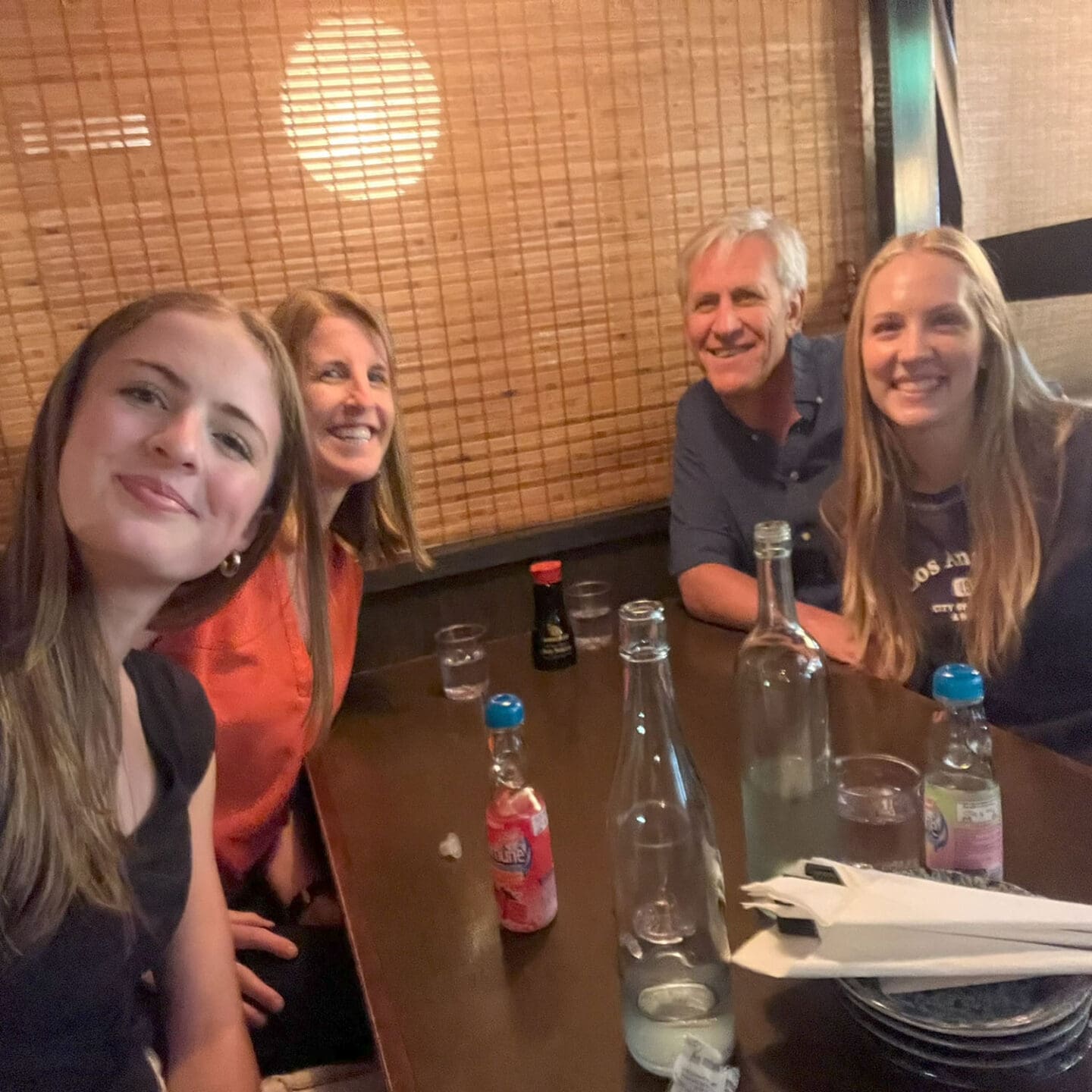 Julia and her daughter at dinner with Hermanus and his daughter.