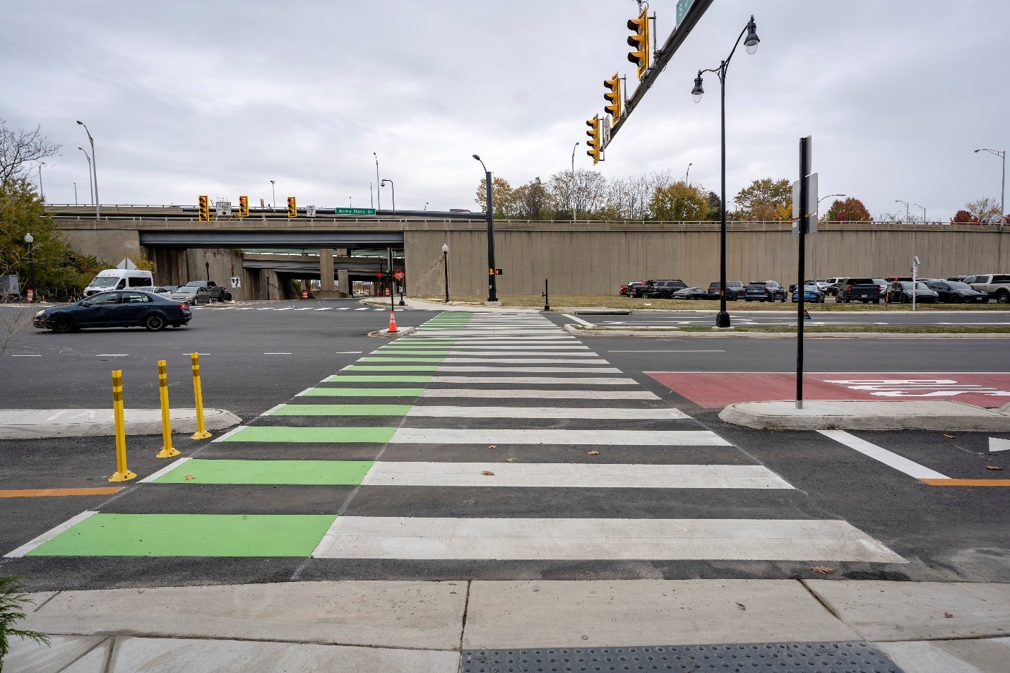 In fall 2025, the County opened the new Army Navy Drive with bicycle lanes, transit lanes, and improved pedestrian crossings, having incorporated the concept design based on results from the multimodal transportation analysis. Kittelson supported the final design effort by preparing the traffic signal design plans, implementing the operation from the original analysis, and supporting signal construction through the opening.